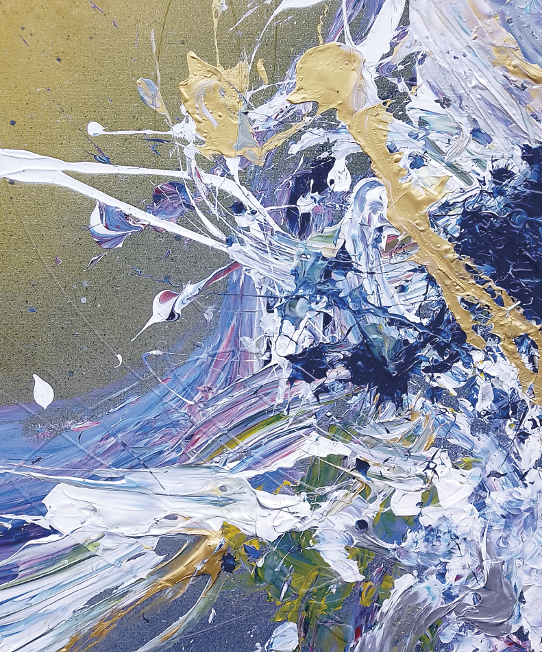 日々の生活のなかで、思考のクセや感情に縛られ、身体が縮こまってしまうこともあるでしょう。しかし、この作品の飛沫のように、本来のあなたには枠に収まりきらない自由な生命力が備わっています。この絵を眺めながら、深く呼吸をしてみてください。今、あなたの内側にどんな景色が広がっていますか? その小さな芽吹きを大切に育てることで、自分自身を解き放つ新しい一歩が始まります。この作品から感じたことがあれば、ぜひ下記のQRコードからメッセージをお寄せください。