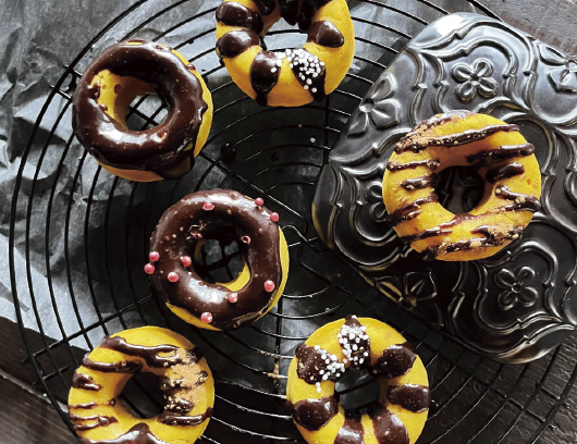 えんどう豆ミートを使った新発想のかぼちゃの焼きドーナツ。大好評だった先月のココア味に続く秋色フレーバーです